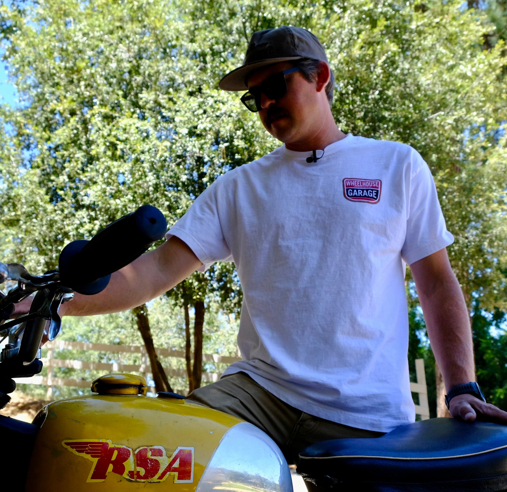 A fresh Wheelhouse logo for Summer 2024 inspired by the BSA Spitfire Series in a classic fitting t-shirt.